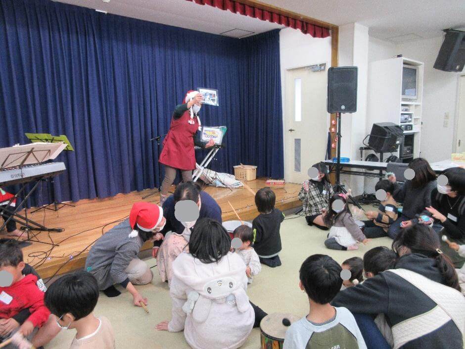 しんぐるまざぁずカフェで2022年12月に実施したクリスマス会の様子。広い会場をお借りして、音楽会を開催しました。