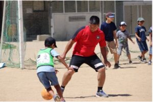 地域住民にご協力をいただきながら、理事長と「みんなでスポーツを楽しむ」こどもたち