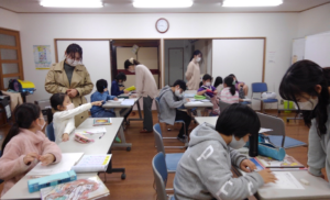 集会所を活用した放課後のお茶の間学習教室。子供たちと学生たちが兄弟姉妹の感覚で共に学び合う家庭的雰囲気を醸して子供の成長を育みます