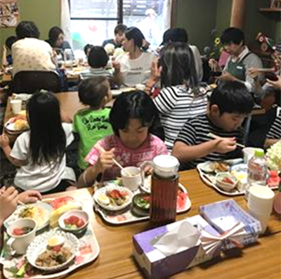 令和元年10月30日にオープンした下原ベース(上)と地域の食堂の様子(下)。どんどん利用者が増えています。