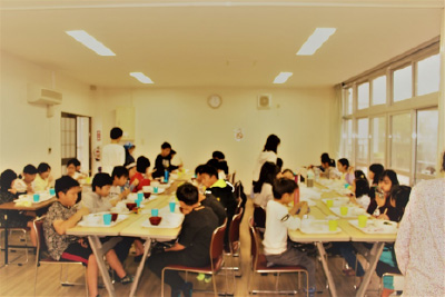 (2)温かい手作りの食事の提供:みんなで一緒に食事をすることで安堵感を与える(普段は一人で出来合いのものを食べている子が多い)。