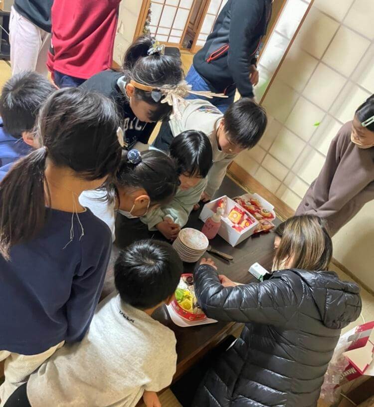 クリスマス会が開催される事を風の便りで聞いた地域の方が、こどもたちにクリスマスケーキをサプライズプレゼントしてくれました。
