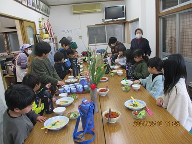 食事の場所を提供してもらっている城見町公民館での昼食の模様