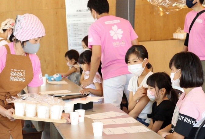 Sakuraリボン認定者による居場所の開催。8月は「日本のだし文化を学ぶ」子供たちに鰹節、いりこ、昆布、化学調味料のだしをそれぞれ試飲してもらい、本物を体験する講座を開講した。