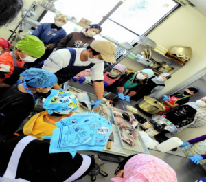 地元の漁師さんに講師を依頼し地元で獲れた魚を捌く体験をしました。年齢に合わせて出来る調理に取り組み、皆でいただきました。