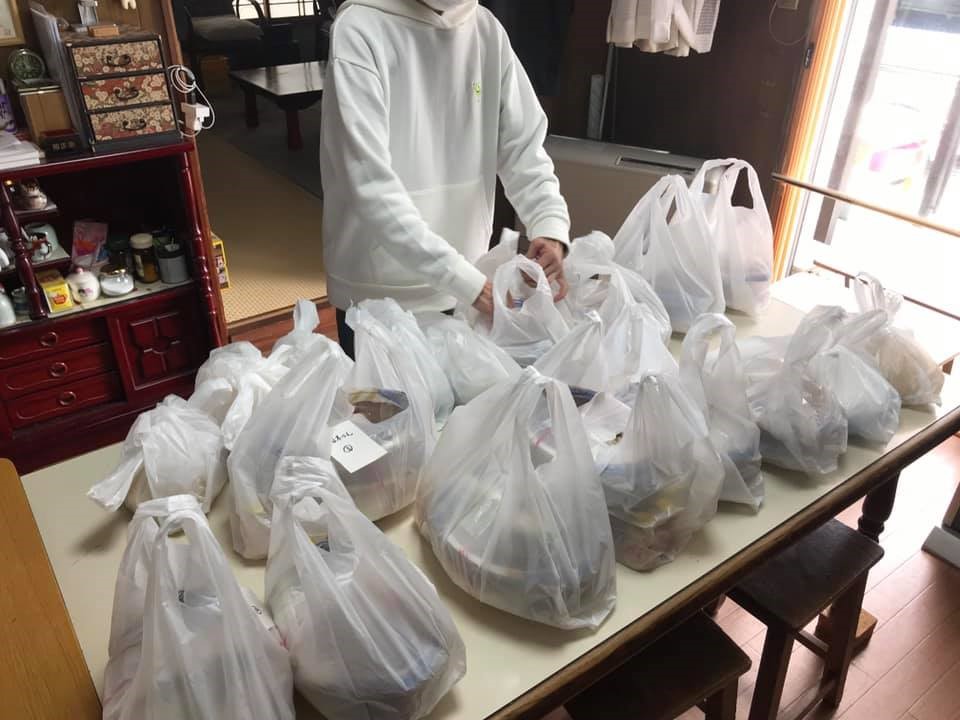 コロナによる小中学校休校期間中に、学校給食の代わりに子供たちにお弁当を配りました。(1回35食で12回の配布を行いました。)