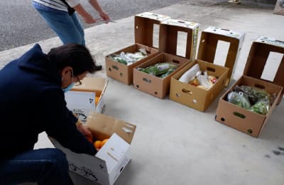 毎週土曜日に小山市内の企業から様々な種類の食品をいただいています。野菜や果物はその日のうちに施設ごとに仕分けして配送します。