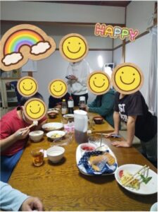 0歳児~中学生、そして妊婦さんも参加してみんなで楽しくご飯を食べています♪